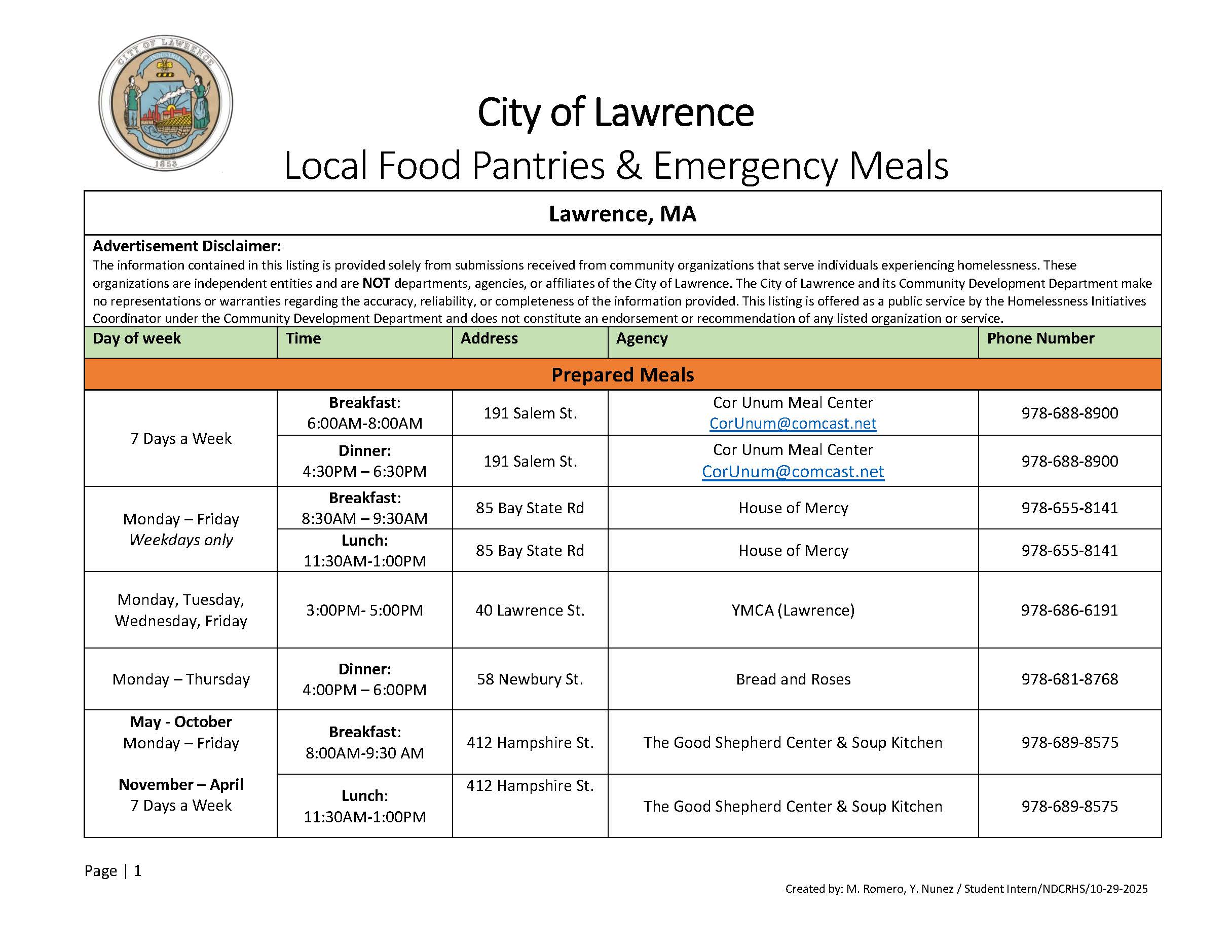 The information contained in this listing is provided solely from submissions received from community organizations that serve individuals experiencing homelessness. These organizations are independent entities and are NOT departments, agencies, or affiliates of the City of LawrenceThe City of Lawrence and its Community Development Department make no representations or warranties regarding the accuracy, reliability, or completeness of the information provided. This listing is offered as a public service by the Homelessness Initiatives