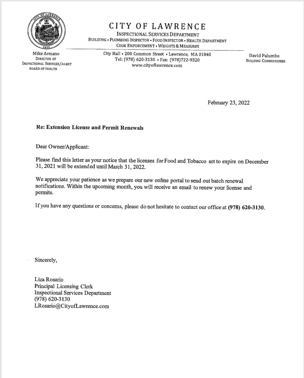 Renewal of The Permit and License for Food and Tobacco, Extended Until March 31, 2022 PDF